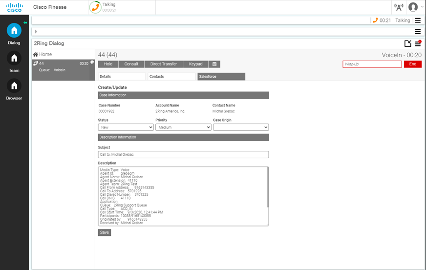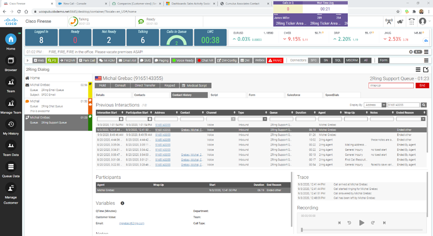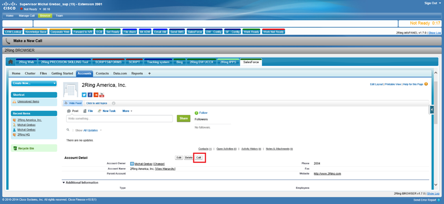 Cisco Finesse 10.5 with Salesforce UI embedded in 2Ring Browser Gadget